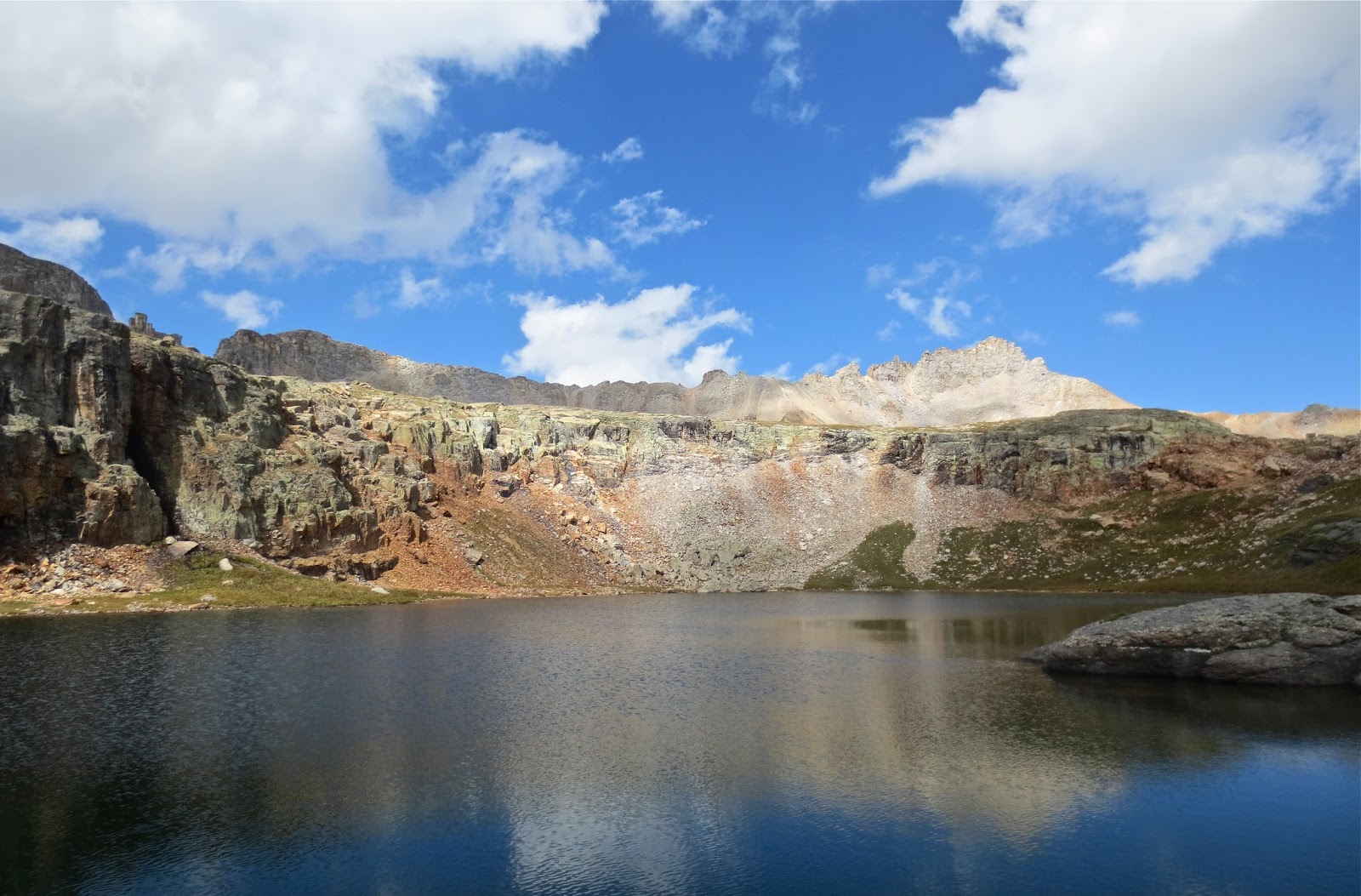 Mike and Nancy, Marathon Man Leonard's brother and sis-in-law, came calling on him up in the Big Box, Californicated, Desert City of Mo-Town...said they'd like to do a light hike someplace Purdy (they're from Austin and that's how they tawlk). So ole Leon contacted the professionals at Mark and Bobbie's Guide Services of Lovely Ouray for ideas about a place to go that would knock socks off...but not put them in a casket—a place where he could maybe take an ice water plunge, preferably in a lake he hasn't seen yet, and not too far of a drive, and less than two level miles from the parking lot. Spreadsheet says....
